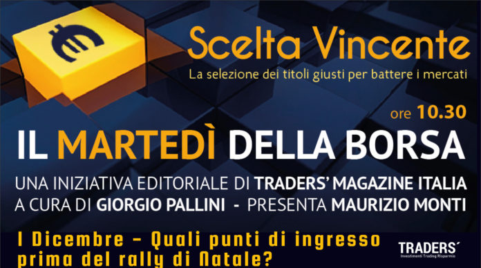 Ne abbiamo parlato al Martedì della Borsa, nel webinar dell’l 1 dicembre scorso, alle 10.30, insieme con Giorgio Pallini, abbiamo esaminato tutti i mercati nazionali ed internazionali ed siamo andati a scoprire insieme i titoli migliori selezionati con il metodo Scelta Vincente.