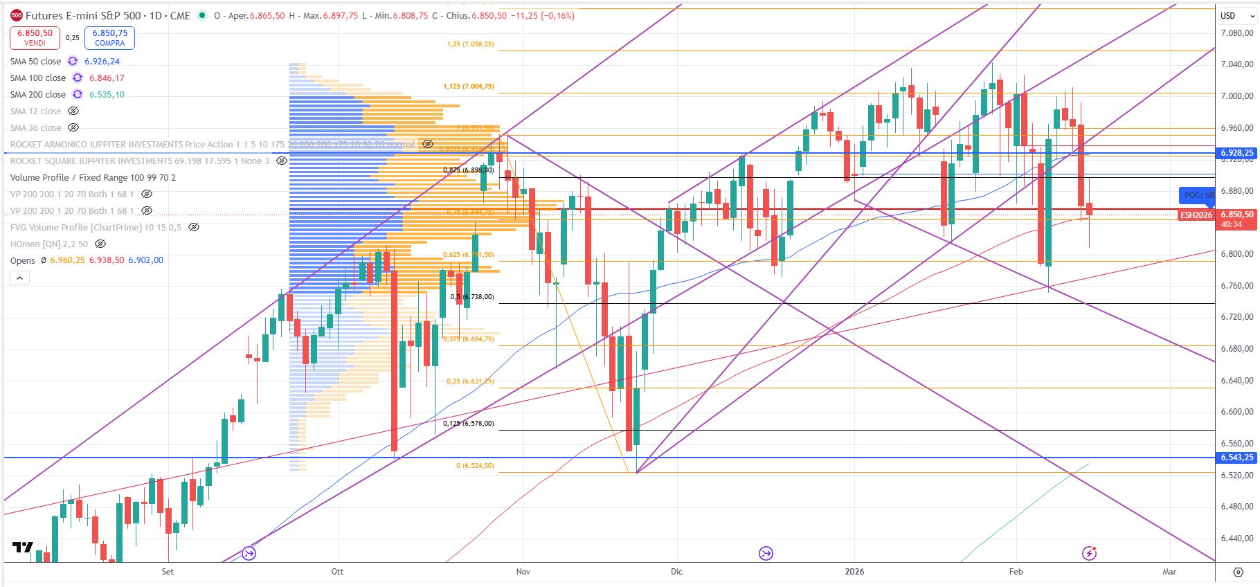 La chiusura di venerdì 13 dell’S&P500 future si è appoggiata sopra la media mobile a 100, nell’area 6850.