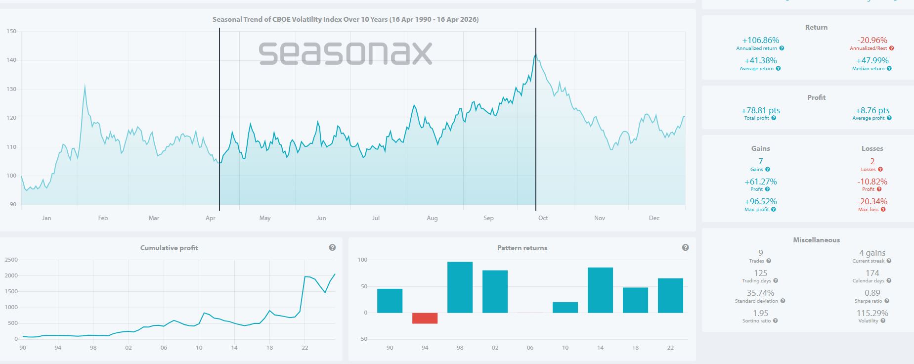 Sono nove anni presi in considerazione, non molti come campione, ma quelli sono da quando esiste il Vix.