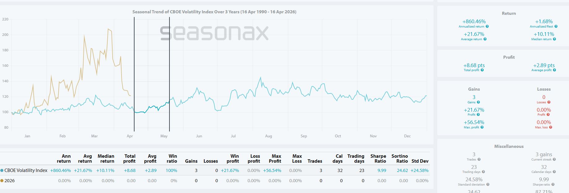 Il Vix nei tre anni “simili per ciclo”.