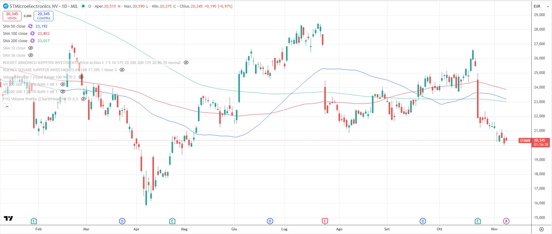 Quotazione attuale intorno ai 20 euro: il minimo è stato fatto nella grande discesa di aprile, che ha coinvolto le borse mondiali, nella zona 16 euro.